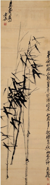 吴昌硕 墨竹 立轴 墨色绢本 125×34cm