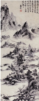 黄宾虹 遥山远水 镜框 墨色纸本 39×101cm