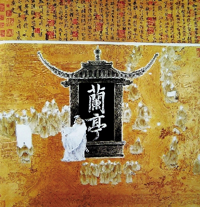 蒋跃 王羲之 120×116cm 金粉 矿物色
