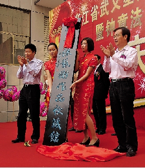 金华市委常委、宣传部长陶诚华,武义县委书记江跃进为钟章法艺术作品收藏馆揭牌