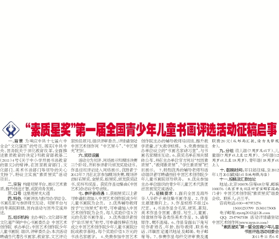 “素质星奖”第一届全国青少年儿童书画评选活动征稿启事