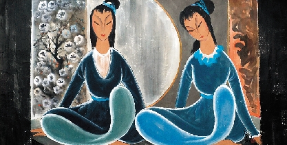 林风眠 紫衣仕女图 纸本 油粉 175.5×90cm 估价:3,600,000-5,000,000