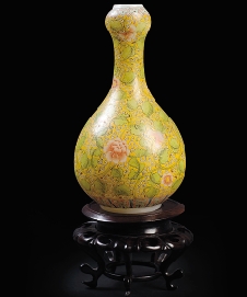 清乾隆 珐琅彩西番莲纹料器瓶 H:17cm