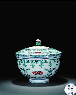 清康熙斗彩福寿纹盖碗
