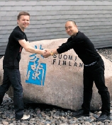 字研所创始人潘剑锋曾任麦肯光明设计部主管,智威汤逊设计总监。英格兰中央大学伯明翰设计艺术学院视觉传播硕士和中国美术学院视觉传达设计硕士。潘剑锋近几年用多种媒介进行设计和艺术创作,包括绘画、陶瓷、影像装置以及动画,将中国传统艺术功底和创意相融,获亚洲设计奖字体类银奖、克里奥国际广告银奖等众多国际大奖,并多次参与大型展事及举办个展。左图为潘剑锋(右)和芬兰馆建筑师在芬兰馆中文标识前合影。