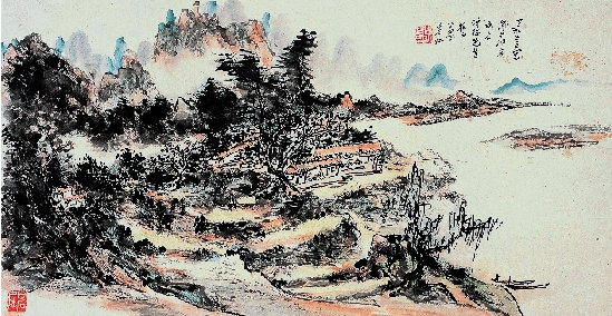 黄宾虹 乡居消夏图 设色纸本 镜片 32×60cm 出版:2011年西泠印社出版社《浙江四大家》续集P147