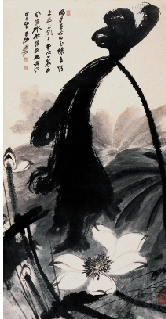 张大千 荷花 设色纸本 立轴 105×55cm