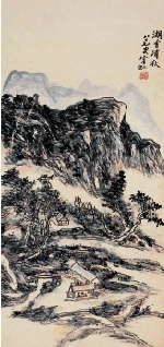 黄宾虹 湖舍清秋 设色纸本 立轴 73×36cm 出版:1、《中国近现代画派画集·京津画派》,天津人民美术出版社,2002年12月第一版。2、《天津人民美术出版社藏画·黄宾虹》P21,2004年8月第1版。