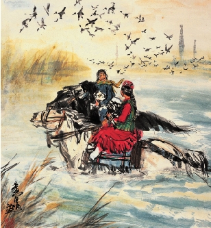 黄胄 青春之歌 设色纸本 立轴 74×68cm