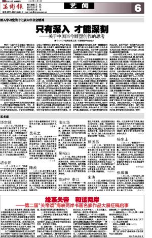党的十七届六中全会提出了建设文化强国的战略目标,给了文艺界巨大的发展动力。作为中国艺术重要力量的中国雕塑界,在自觉践行建设文化强国战略方面,理应有深入的思考和积极的行动。特别是在社会经济大发展的今天,人的各种欲望膨胀和社会普遍浮躁,文化艺术对人类心灵的净化作用更为凸显,因为只有这样才能使我们经济、社会发展更为和谐。雕塑作为一种重要的艺术形式,特别是城市化大发展以后,更以其永恒性和公共性的属性与特征,深刻影响着人民大众,但要真正能肩负起净化人类心灵的作用,雕塑艺术先得升华自身。我认为,当今雕塑唯有深入下去,整体创作才能上得来,才能有大的突破,才有利于精品力作的产生,真正迎来当代中国雕塑的大繁荣和大发展。