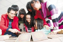 | 近些年来,身居“千年陶乡”陶都宜兴的丁蜀中等专业学校依托该地得天独厚的陶瓷文化产业资源,立足优势品牌,开设具有地方特色的紫砂陶艺专业,培养复合型的紫砂艺人,为陶瓷产业的传承培育了数以千计的“接班人”。图为该校教师胡云良在辅导学生进行陶艺彩绘装饰。 闵学平 摄 |
