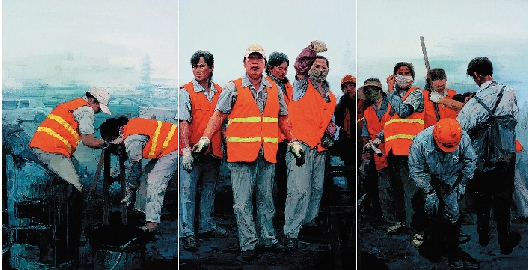 盐城 陆庆龙 徐州下水道四班英模事迹 油画 180×360cm