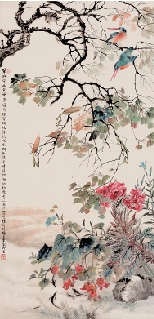 陆抑非 翠羽穿林 145×46cm