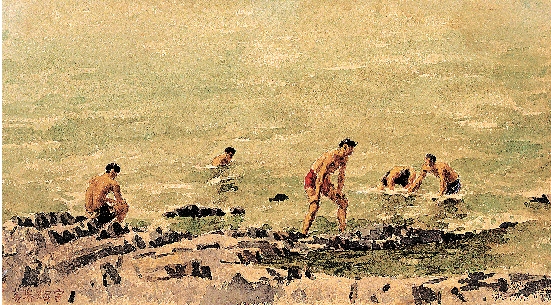 黄养辉 湘江之泳(1941年作) 24×48cm