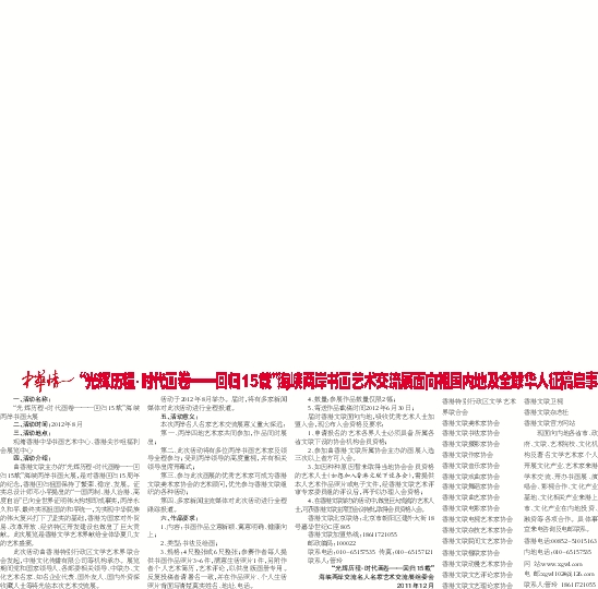 “光辉历程·时代画卷——回归15载”海峡两岸书画艺术交流展面向祖国内地及全球华人征稿启事