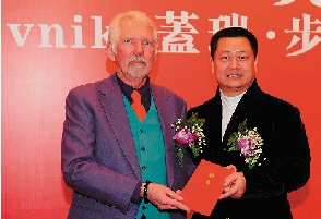 苏州画院院长沈威峰向美国水彩画大师盖瑞·步科夫尼克颁发苏州画院画家聘书