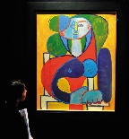 在伦敦佳士得拍卖预展上 ,一名参观者在观看毕加索的《法兰斯雅丝半身像》。(资料图片)