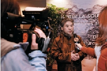 樊洲巴黎画展开幕式现场接受凤凰卫视记者采访