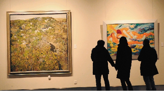 观众在浙江美术馆欣赏“龙腾盛世——近现代书画名家作品展”