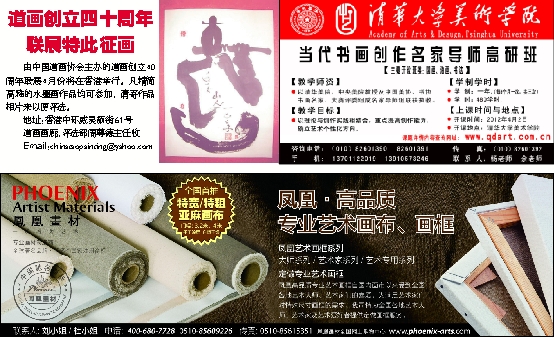 由中国道画协会主办的道画创立40周年联展4月份将在香港举行。凡精简高雅的水墨画作品均可参加, 请寄作品相片来以便评选。