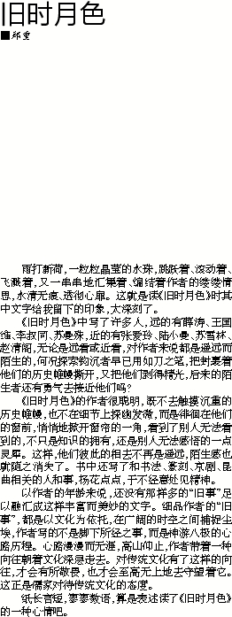 纸长言短,寥寥数语,算是表述读了《旧时月色》的一种心情吧。