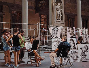 大师雕像下的当代众生相 油画 120×156cm 2012年