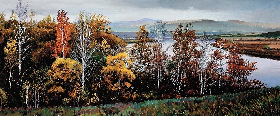 寂静的额尔古纳河 丙烯 44×106cm 2009年