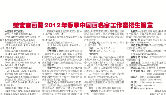 荣宝斋画院2012年春季中国画名家工作室招生简章
