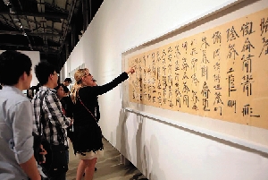 现场观众在辨认徐冰的英文书法
