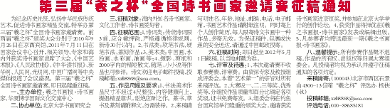 第三届“羲之杯”全国诗书画家邀请赛征稿通知