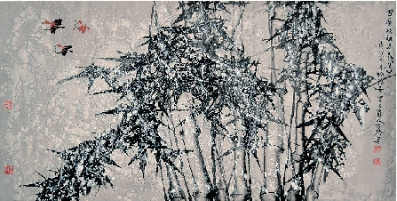李方卿 雪压枝头鸟飞鸣 137×68cm