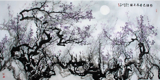 张建新 紫梅花香春月朗 220×448cm 2012年3月26日人民大会堂收藏