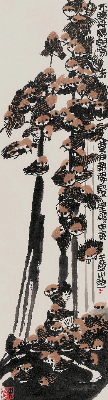 王憨山 雀戏 176×48cm 1998年