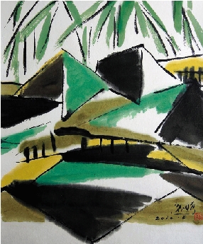 林逸鹏 傣寨系列之十七 纸本水墨 40×48cm 2010年