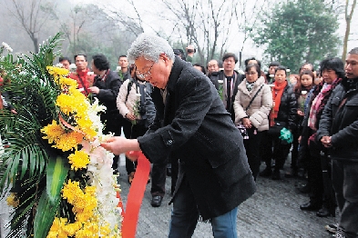 张立辰先生携弟子祭拜潘天寿先生诗亭及墓冢