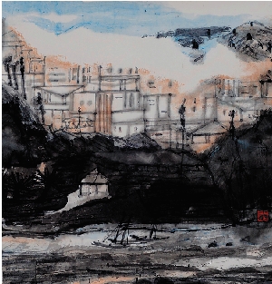 王飚 白沙漫步·太阳出来了 62×62cm 2009年