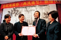 日前,画家、杭州兰亭画院院长金晓海来到杭州云居山,专门为浙江革命烈士纪念馆捐赠国画《高风亮节》。此次捐赠的国画作品长2.85米,高1.2米,以挺拔耸立的毛竹和茁壮的毛笋为主体,即象征着革命先烈坚贞不屈的精神。 (李震宇)