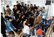 老杨做模特,贺亮在画头像素描
