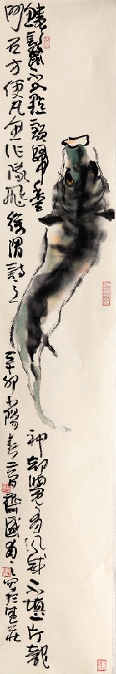 盛欣夫 鱼跃四屏 136×22cm×4