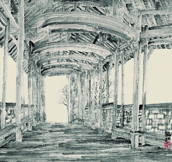 苗壮 桥上荫凉 水墨纸本