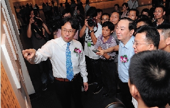 向浙江省委常委、杭州市委书记黄坤明等介绍作品。