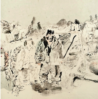 任晓军 山庄人物之一 68×68cm 国画