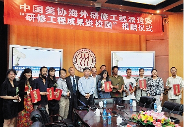 中国美协领导吴长江、陶勤,中国人民大学艺术学院领导徐唯辛、徐庆平与本年度10位研修人员合影