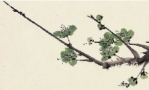 步骤二:写梅花可先写枝后布花,也可先写花头后添枝。所以这就需要我们在写生时,掌握其生态规律后去适当调整变化,并适当发挥一些创作元素。布花时先点写正面与侧面的花头,然后再去点写小花苞,也可在写枝时随机添加。