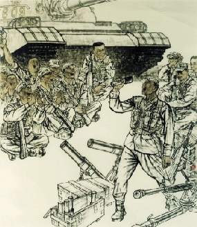 蒙虎(甘肃兰州) 训练场上的歌星 中国画