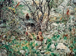 张恒中(河南博爱) 太行猕猴保护区 水彩画