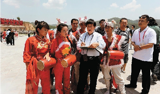 一下汽车,刘大为主席就被眼前安塞腰鼓的激情感染,画起了速写