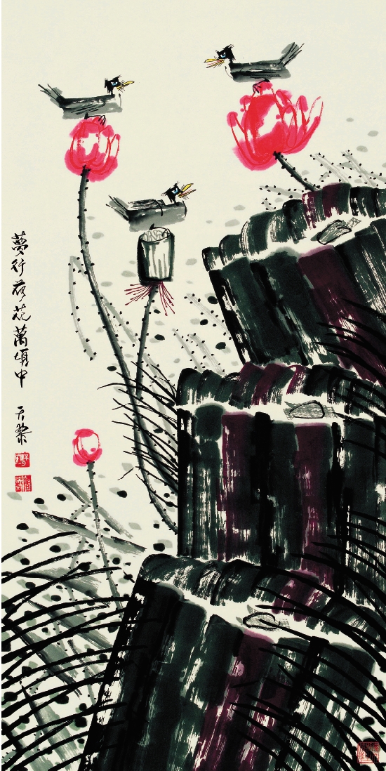 周天黎 梦行荷花万顷中 137×70cm 2012年