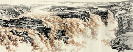 解安宁 黄河远上 纸本 200×400cm 2011年