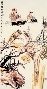 王冶 品茗赏梅图